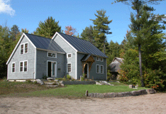 The Fox Maple School campus is located on Corn Hill Road in West Brownfield, Maine. The 40 acre site is situated on a southeasterly sloping wooded land in the rural foothills of western Maine. Drive time from Portland, Maine is about an hour and 2-1/2 hours from Boston. To date, four structures that make up the core campus complex are operational. The core campus structures have all been built primarily by students and apprentices in structured workshops and incorporate a variety of traditional and indigenous building systems and approaches. Natural, locally obtained materials were used as much as possible.