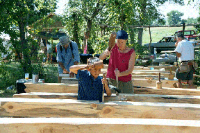 After completing a thorough survey, we then organize a formal workshop in which a community building is built for and with the people in the community. This includes active participation of from 8 to 12 community members (though a much greater number take part in the process), coupled with 8 to 10 students from outside the community. Primary funding for the building project is generated directly through the tuition paid by outside students. There is no cost to the local community. A unique, multi-cultural educational exchange results, training people in not only the craft of timber framing, but also a variety of natural and traditional building approaches that readily uses their local resources. Through the process a needed structure that embraces these cultural elements evolves. Through this, a viable alternative building model evolves that can then be expanded within the greater community. Success breeds success.