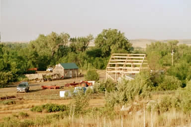 The Slim Buttes Site. 2001 Greenhouse project on left, 2002 frame on right.